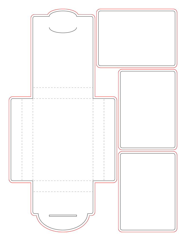 Probably easiest to print this on the blank side of patterned cardstock. I intend to print booster pack assembly instructions on the inside where these cut lines are. If you want to put your own cool design on the packs, though, the PSD comes with a bleed layer: just drag in your image and clip it to that layer and adjust as necessary.