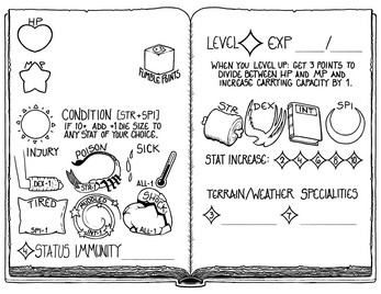 A little hand-drawn character sheet for the tabletop role-playing game Ryuutama. Folds into a little eight-page booklet, zine-style.